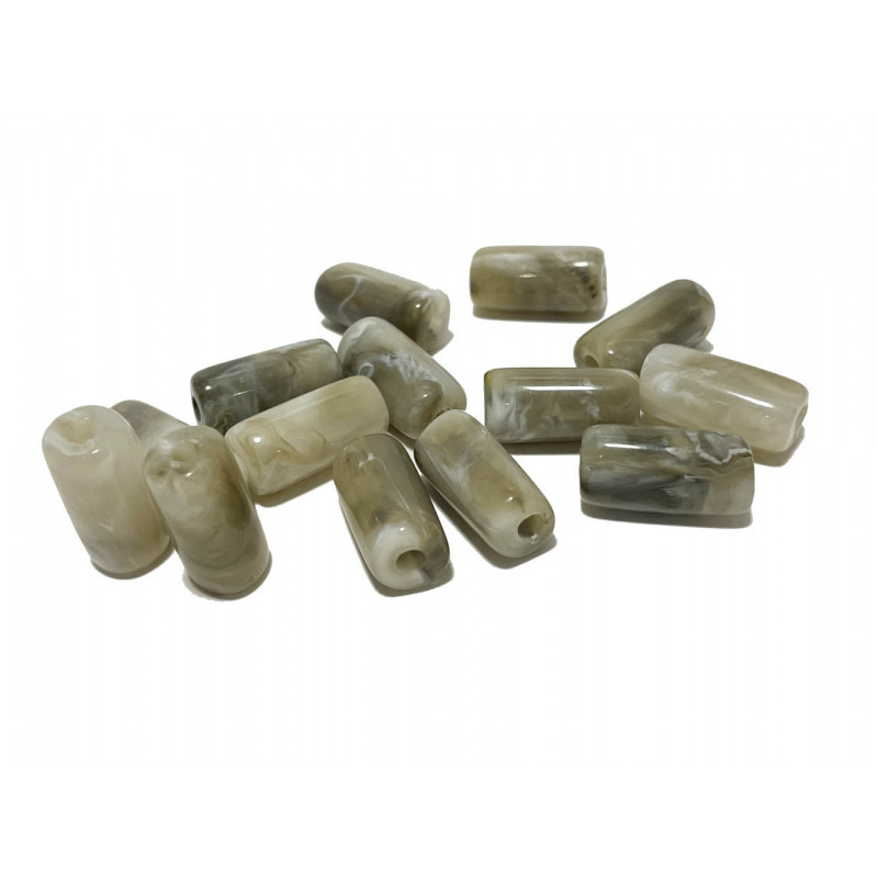 Gros tube de 12x8 mm, gris marbré en résine. Du fait de la matière ces perles sont grosses mais très légères. Avantage incontestable pour faire des bijoux de grosse taille.