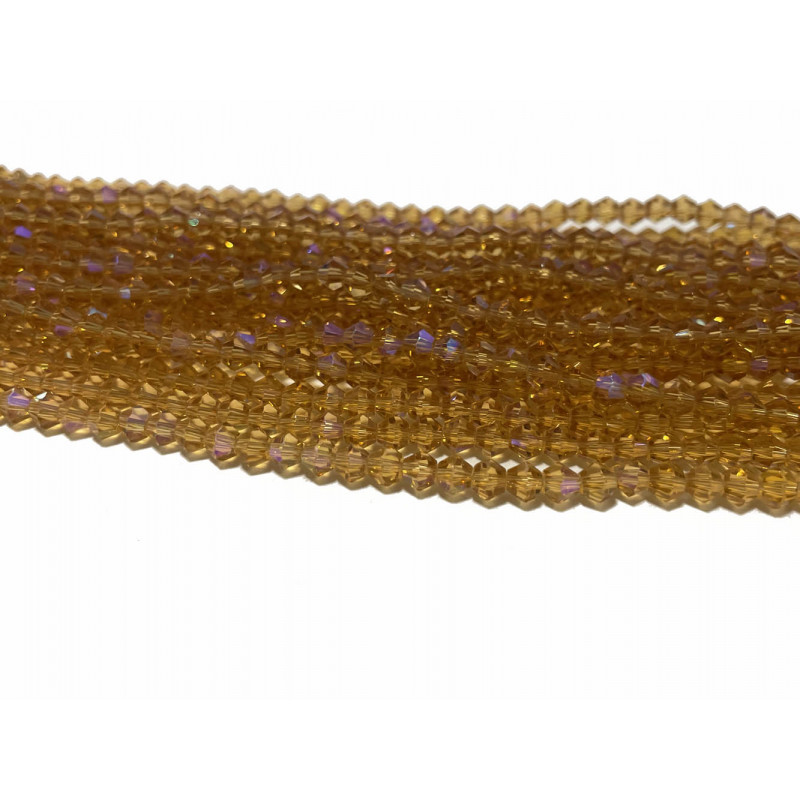Environ 83 perles toupies en verre à facettes brillants. Topaze électroplaqué irisé.