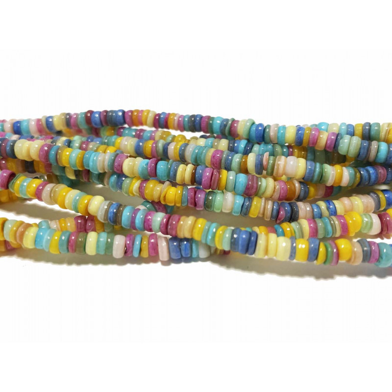Perles rondelles en coquillage d'eau douce teinté. Multicolore, 4 mm. Vendu par fil d'environ 245 perles.