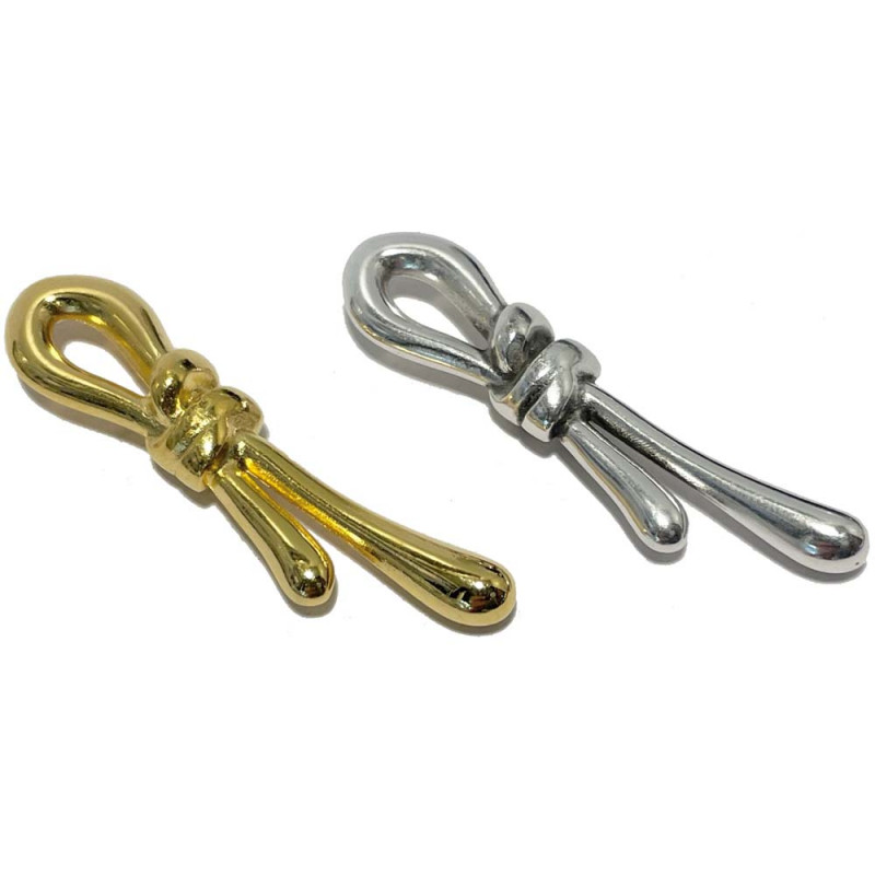 Pendentif en forme de gros noeud en zamac argenté. 43*10 mm, épaisseur 6 mm. Très belle finition du noeud avec de très beau détails.