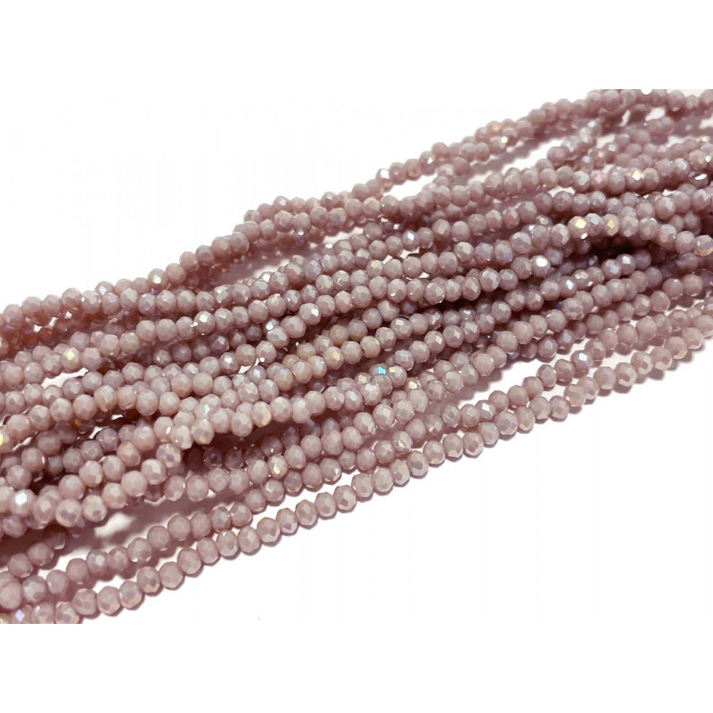 Perles en verre à facettes 3*2 mm avec enfilage de 0,6 mm. Vendu par fil d'environ 135 perles.