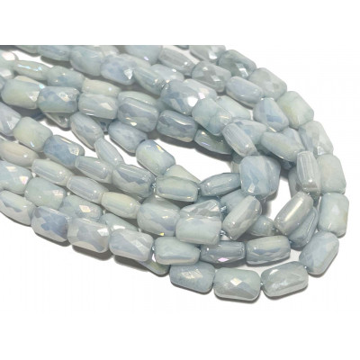 5 perles en verre à facettes, bleu clair. 7*4 mm rectangle plat avec trou d'enfilage 0,8 mm. Finition électroplaquée.