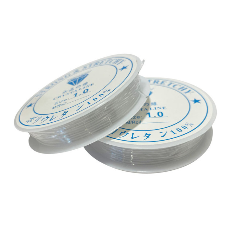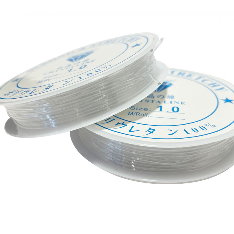 Bobine de 10 mètres de fil élastique en nylon transparent pour création bijoux. Diamètre 1 mm.