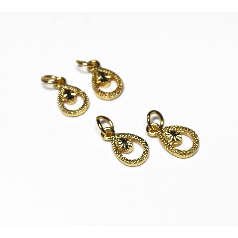 Breloque goutte. Alliage doré. 12,5x7 mm + anneau de jonction 5mm. Vendu à la pièce